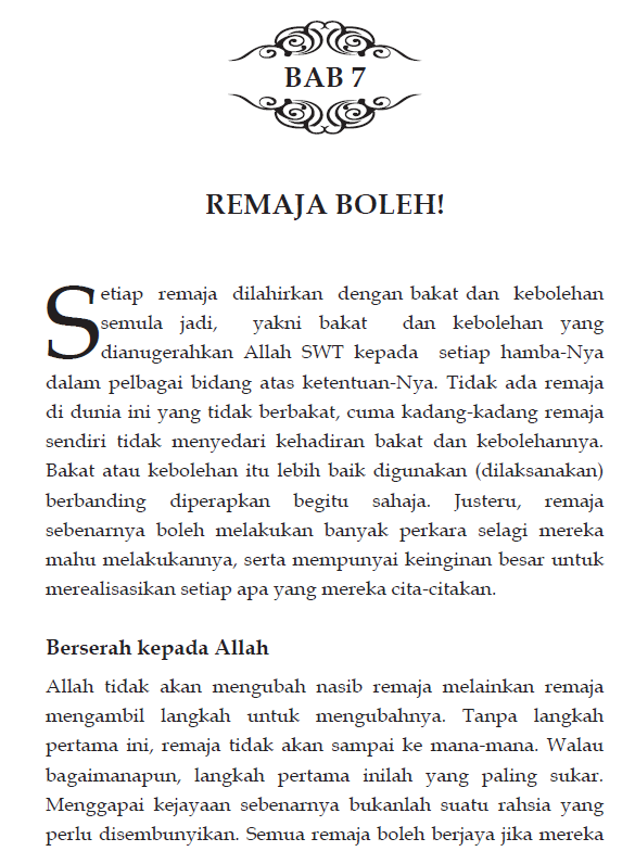 Maka bertolak dari situlah, segala apa yang ditulis dalam naskah kecil ini diharapkan dapat menjadi pembakar semangat dan pencetus motivasi kepada para pembaca, khususnya remaja untuk menjadi seorang ‘manusia’ yang hebat. Atas dasar percaya bahawa setiap manusia perlu kepada motivasi sebagaimana yang berlaku kepada manusia hebat di zaman sebelumnya, maka buku ini juga membawa mesej yang penting agar remaja dapat mengekalkan momentum semangat untuk mengharungi apa jua rintangan dan cabaran bagi menempuh kehidupan yang pantas dan serba mencabar ini.